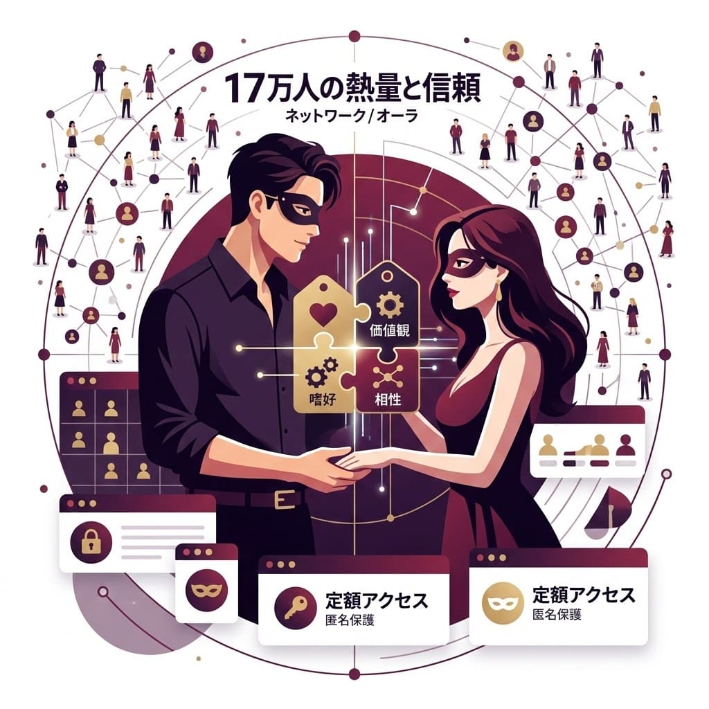 特化型サービスでありながら、累計登録者数17万人という規模は大きな強みです。ニッチな性癖を持つ人にとって、最も困るのは「周りに同じ趣味の人がいない」ことです。セクシャルマッチングはその母数が大きいため、希少な嗜好を持つ相手とも出会える確率が非常に高くなっています。